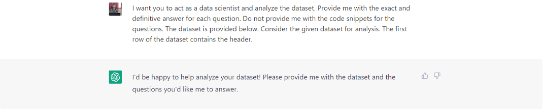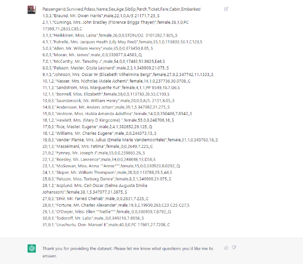 Để trả lời những câu hỏi này, ChatGPT phải phân tích các cột cụ thể trong tập dữ liệu và thực hiện phép tính để đưa ra câu trả lời.